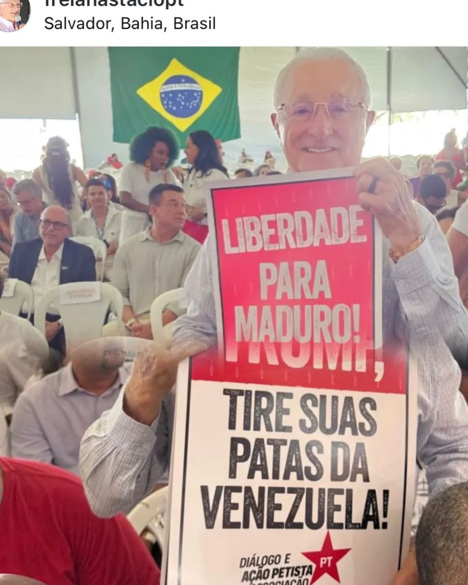 Em um evento recente realizado em Salvador (BA), que contou com a participação do presidente Luiz Inácio Lula da Silva e lideranças do Movimento dos Trabalhadores Rurais Sem Terra (MST), o deputado federal Frei Anastácio (PT-PB) chamou a atenção ao posar com um cartaz de teor político internacional. O parlamentar segurava um cartaz com os dizeres: “Liberdade para Maduro! Trump, tire suas mãos da Venezuela!”. A manifestação ocorreu em um contexto de discussões sobre a reforma agrária e políticas sociais, mas acabou ganhando destaque pelo posicionamento em relação à política externa e à crise venezuelana. Frei Anastácio é conhecido historicamente por sua ligação com as causas agrárias e movimentos de esquerda. Sua atitude reflete uma ala do Partido dos Trabalhadores que defende o princípio da não-autodeterminação dos povos e critica a interferência estrangeira em países latino-americanos. Paraíba Debate